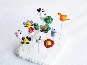 Mit indischen Stempeln lässt sich gut ausprobieren, wie man Mustereinheiten anordnet, kombiniert und wiederholt einsetzt (Rapport). Wir bedrucken in diesem Workshop ein Geschirrtuch.